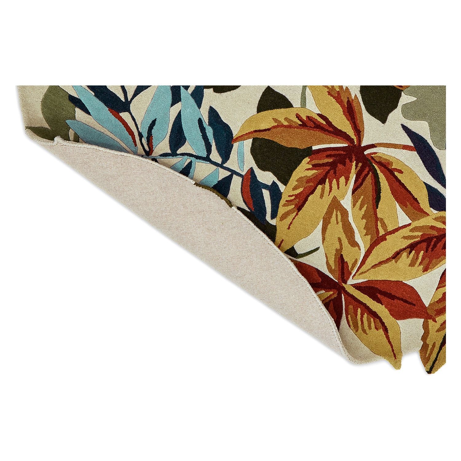 Sumptuous rich colours allude to the changing seasons, with the carved edges of the rug adding depth to the ground and exaggerating the luscious leaves within the design.