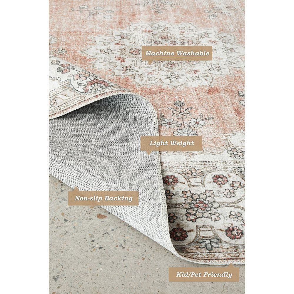 Audin 115 Peach Multi Coloured Bohemian Style Machine Washable Modern Rug Details: