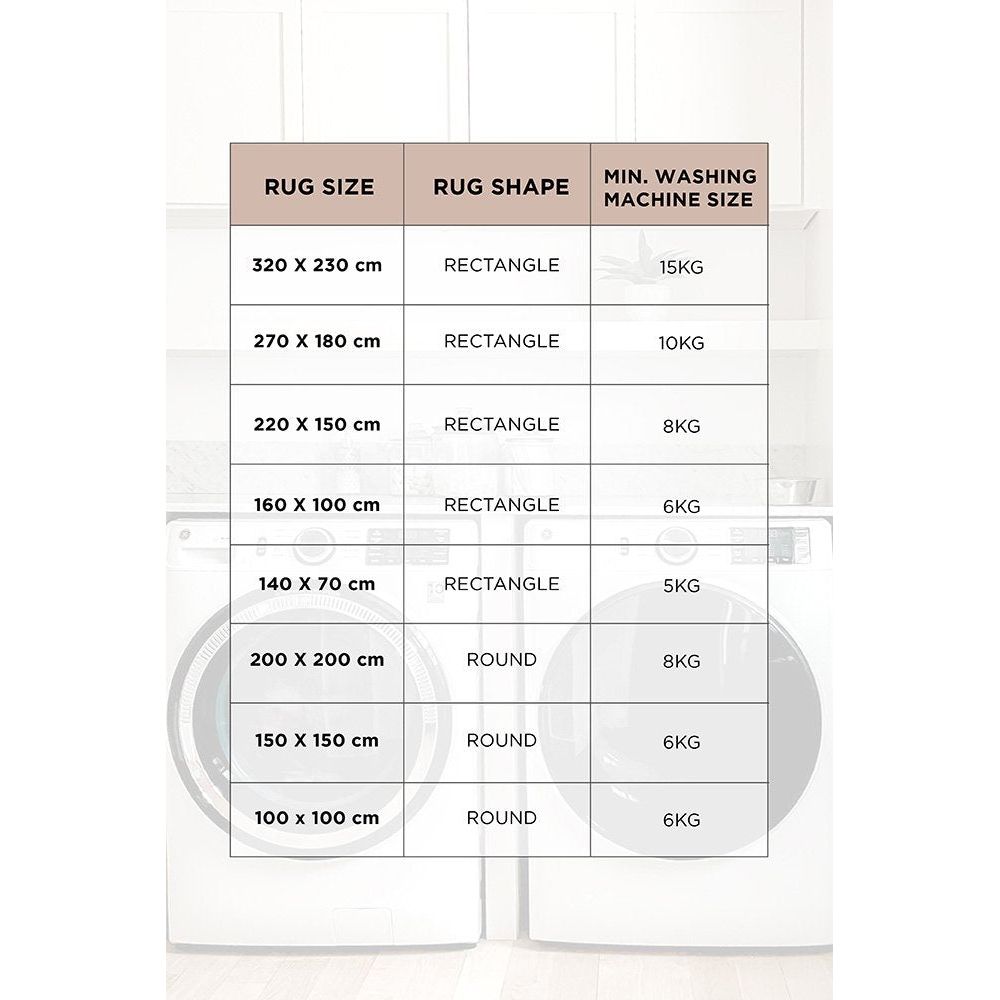 • The maximum capacity of an 8kg washing machine is a size of 220 x 150cm. Commercial washing machines are recommended for larger sizes.