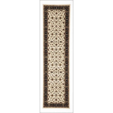 Charook 2376 Ivory Traditional Pattern Black Border Runner Rug
