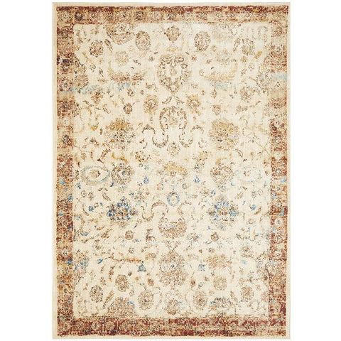 Beliz Ivory Multi Coloured Border Transitional Patterned Designer Rug The Beliz Ivory Multi Coloured Border Transitional Patterned Designer Rug is a classically inspired piece with a contemporary touch. Silky smooth to touch, this low pile, low maintenance transitional styled rug can be the stand out centerpiece of any room in your home or office. Our Beliz rugs feature a sophisticated, modern touch to traditional designs. Showcasing a soft abrash effect, all rugs in this range feature colours that are aligned with today's interior styling trends.Features: Charming whimsical design Style: Transitional Made in Egypt 10mm pile height Material: Polypropylene Easy to clean Sizes (cm): 230 x 160, 290 x 200, 330 x 240, 400 x 300 Machine Made Important Tip:  We recommend that an anti-slip rug pad such as our Supa Rug Grip is used underneath rugs to prevent slippage between the rug and the surface it is placed on, and also to add an extra layer of comfort. Click here to view our range of rug pads. Please Note: This item cannot be delivered to a PO Box, only to a street address. Please Note: Allow for a slight variation of colours depending on monitor settings.
