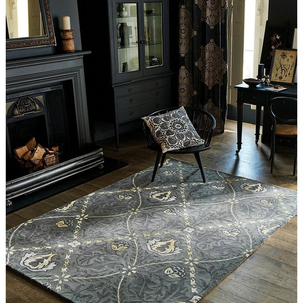 Morris & Co Pure Trellis Black Ink 029105 Designer Wool Viscose Rug
