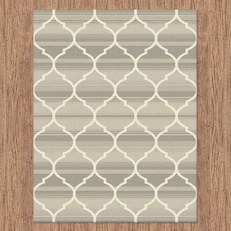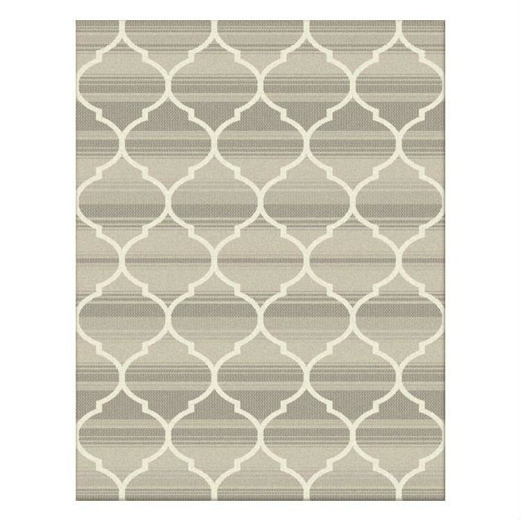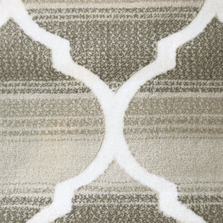 Make a stunning statement in any area of your home with this gorgeous, abstract contemporary patterned rug. This rug features a beige trellis / lattice pattern on a grey, cream and taupe stripe patterned background.
