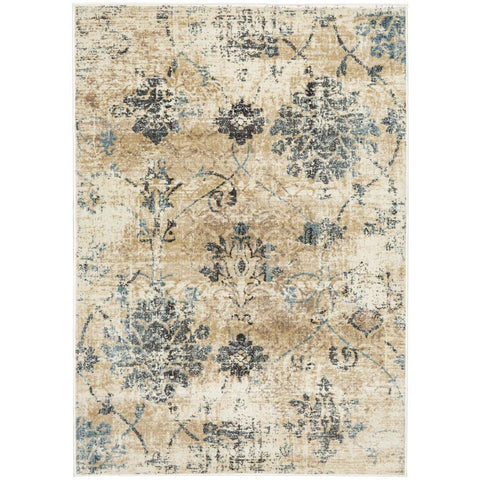 Denzel Blue Beige Floral Patterned Motif Modern Rug