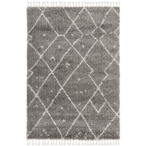 Zaria 154 Grey Moroccan Inspired Modern Shaggy Rug Features: Beautiful modern Berber Moroccan Inspired rug Super soft, dense shaggy pile for maximum comfort under foot Stunning tassels along both shorter ends of each rug for added authenticity - adds 8cm to each end (adds 16cm total to longer side). Neutral tribal designs to suit a wide range of modern interiors Non shedding and easy to clean - great for long term low maintenance, and perfect for kids, toddlers and pets. Durable for great longevity Great value for money Made in Turkey Style: Shaggy Construction: Power Loomed Pile height: 40mm Material: Polypropylene Sizes (cm): 170 x 120, 230 x 160, 290 x 200, 330 x 240, 400 x 300 Also available in runner sizes  Imagine the breathtaking Zaria 154 Grey Moroccan Inspired Modern Shaggy Rug being the new talking point of your home or office. This rug is expertly power loomed in Turkey, easy maintenance, and designed to last. Available in 25 stunning designs, our Zaria range showcases stunning Berber Moroccan Inspired patterns in a super plush non-shed pile, for an amazingly cushioned feel under foot. Make a stylish change to your home or office today with this beautiful, durable and low maintenance Moroccan inspired rug. Consider a Rug Pad:  We recommend that an anti-slip rug pad is used underneath our rugs to prevent slippage between the rug and the surface it is placed on, and also to add an extra layer of comfort and insulation. Click here to view our range of rug pads. Please Note: This item cannot be delivered to a PO Box, only to a street address. Please Note: Allow for a slight variation of colours depending on monitor settings.