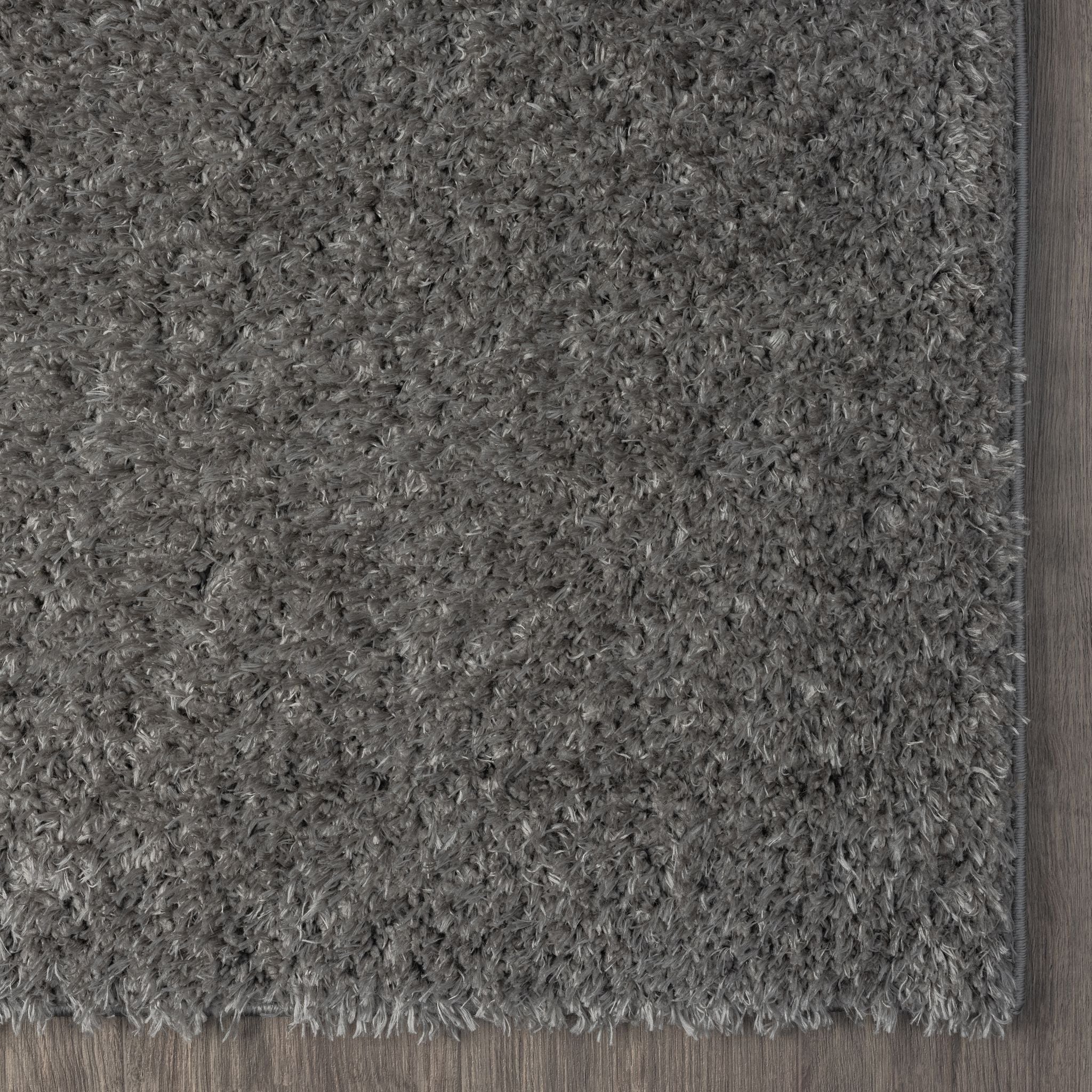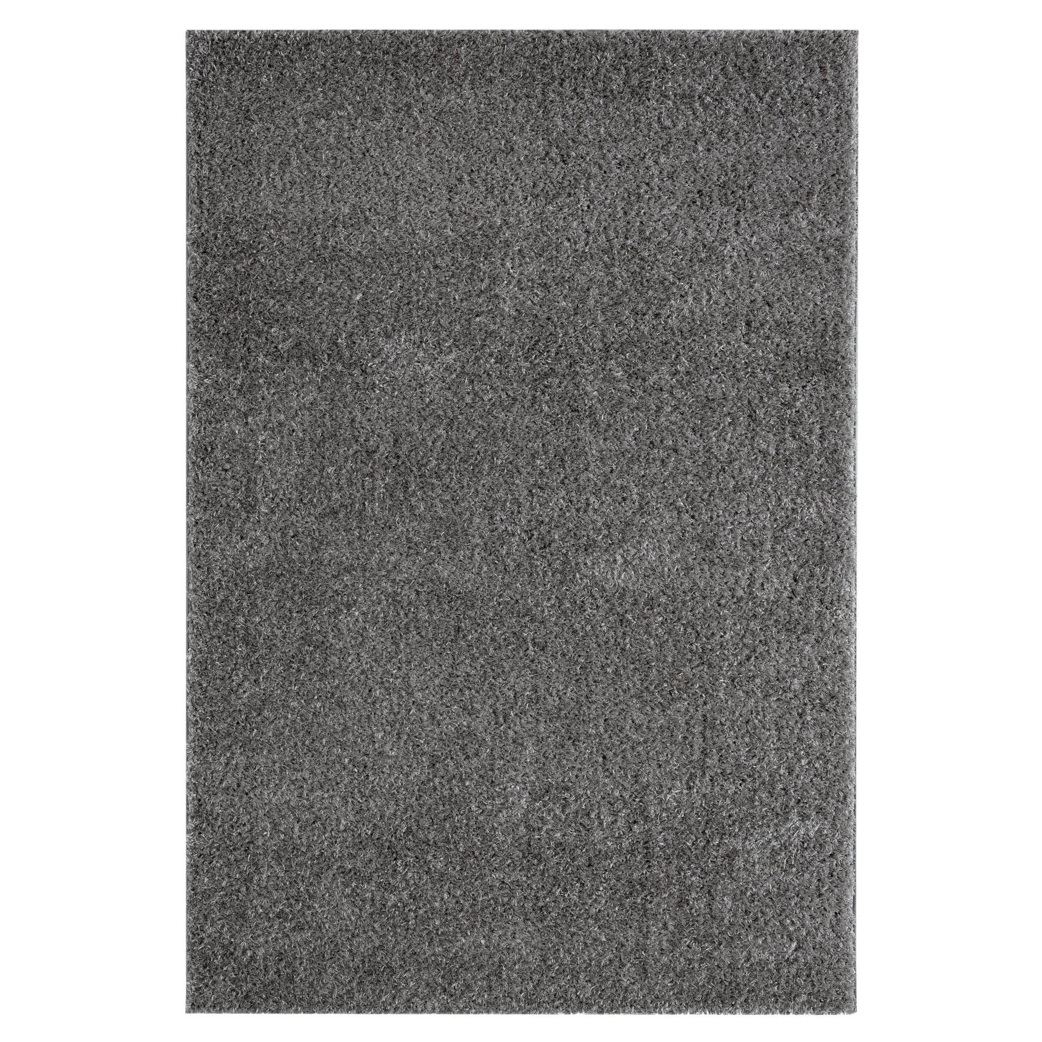 Grey and silver modern shaggy rug with a soft, plush polyester pile.