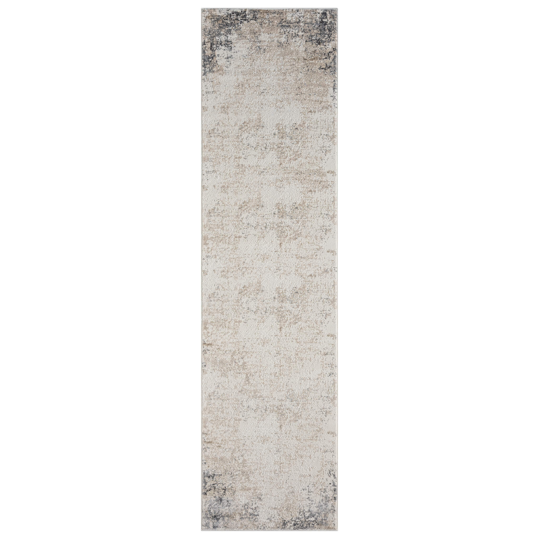 Beige and grey modern runner rug with subtle textured pattern and faded edges.