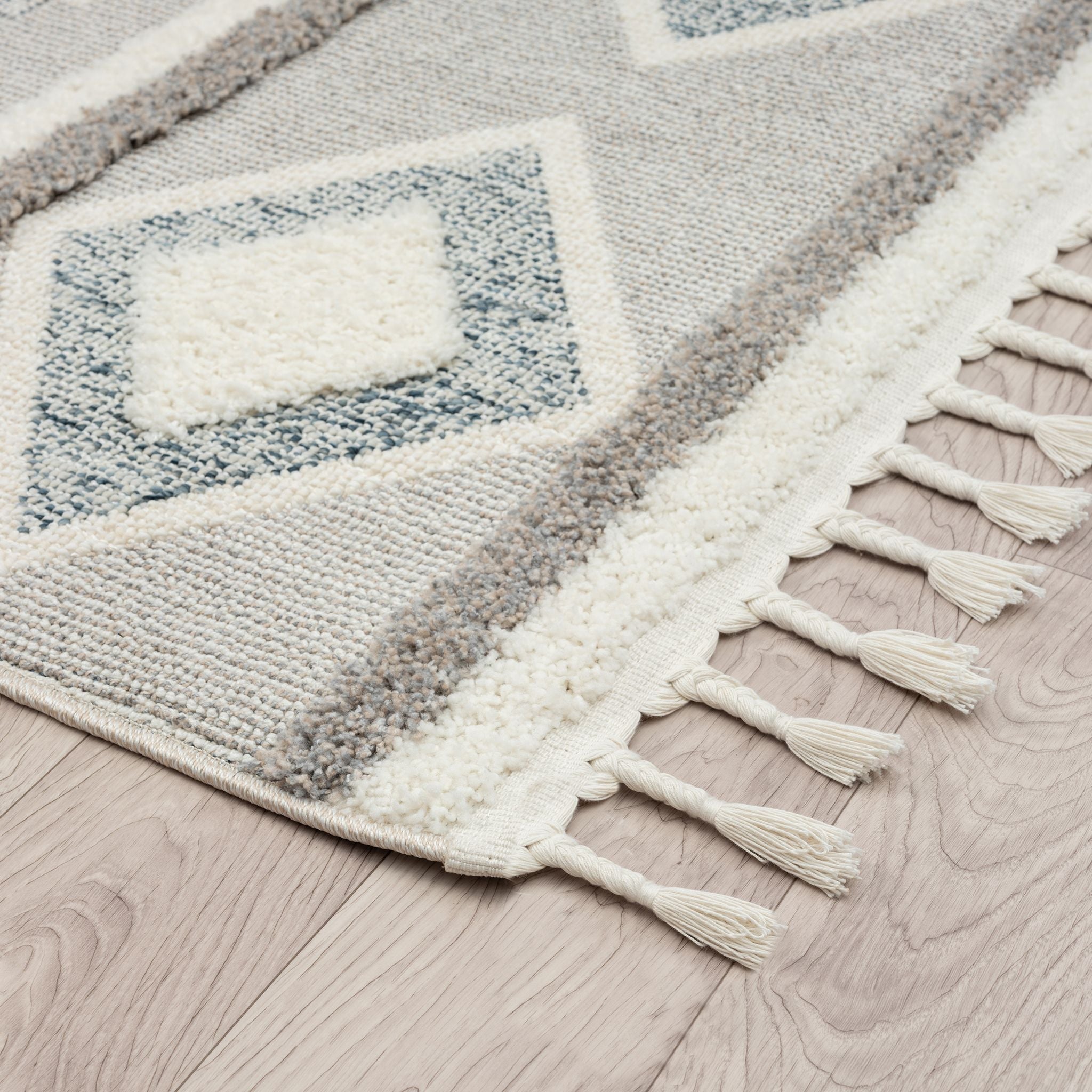 A balanced, harmonious colour palette is paired with versatile geometric motifs, allowing each piece to integrate effortlessly across a variety of interiors. Expertly power-loomed into a durable cotton and jute foundation and finished with braided fringes, the collection reflects both craftsmanship and considered design.