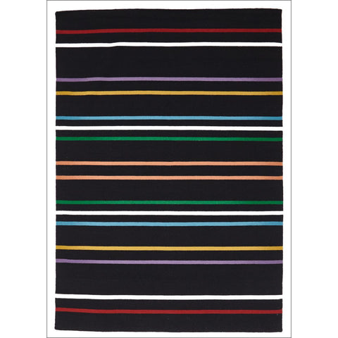 Oslo Multi Coloured Stripe Flat Weave Wool Rug Black