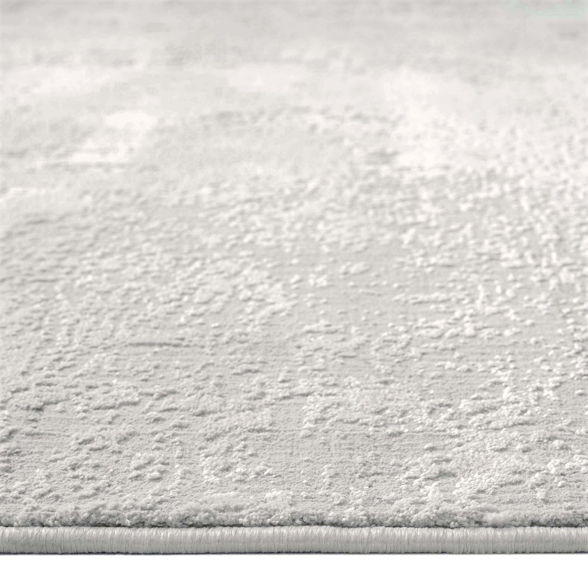Light grey modern runner rug with subtle multi-textured pattern and soft pile.