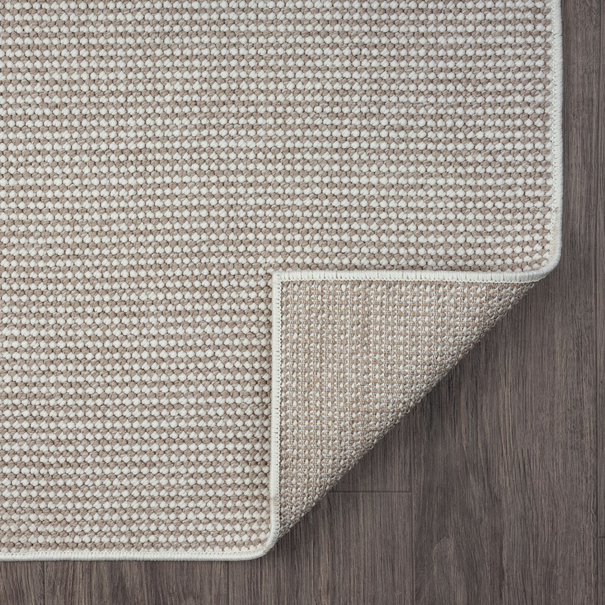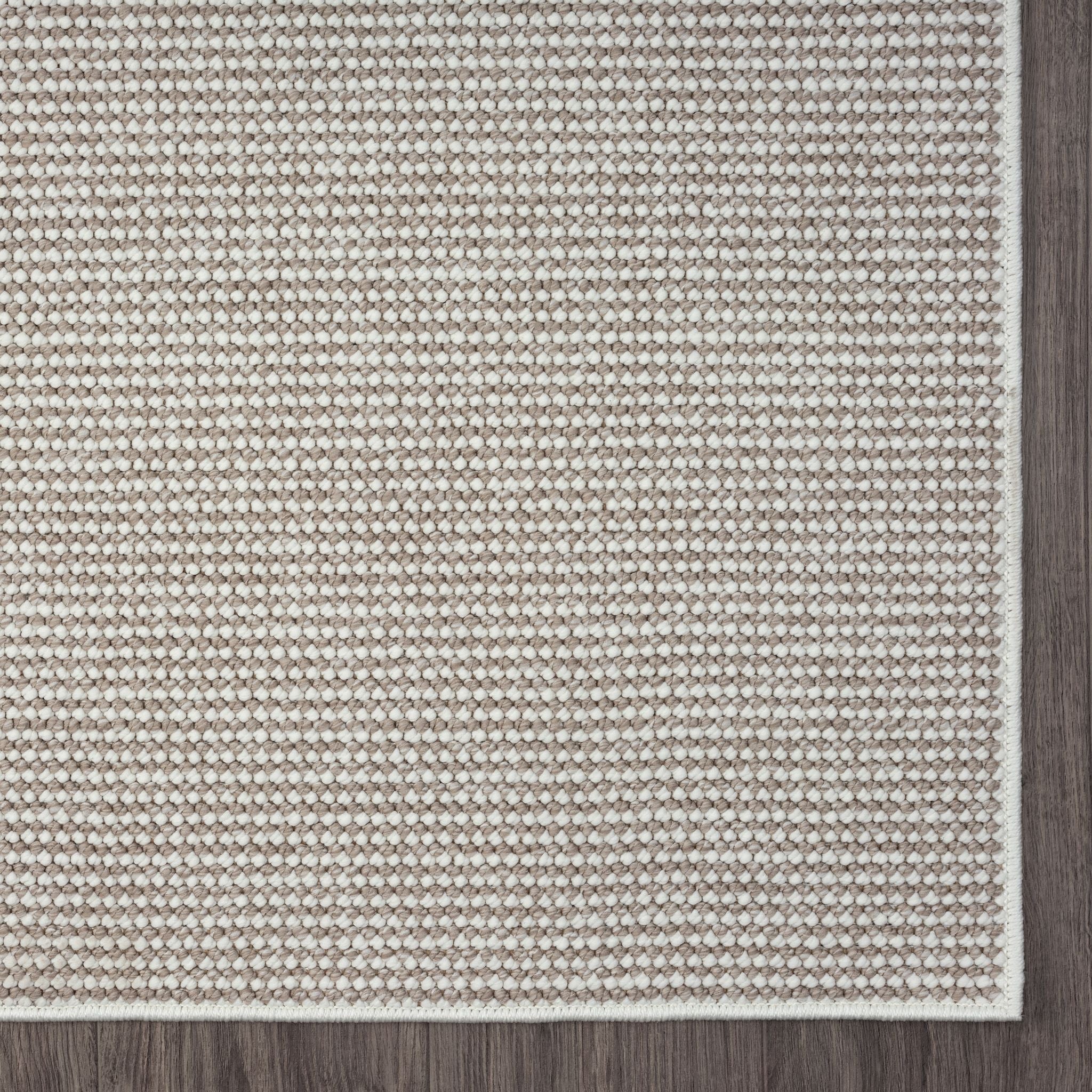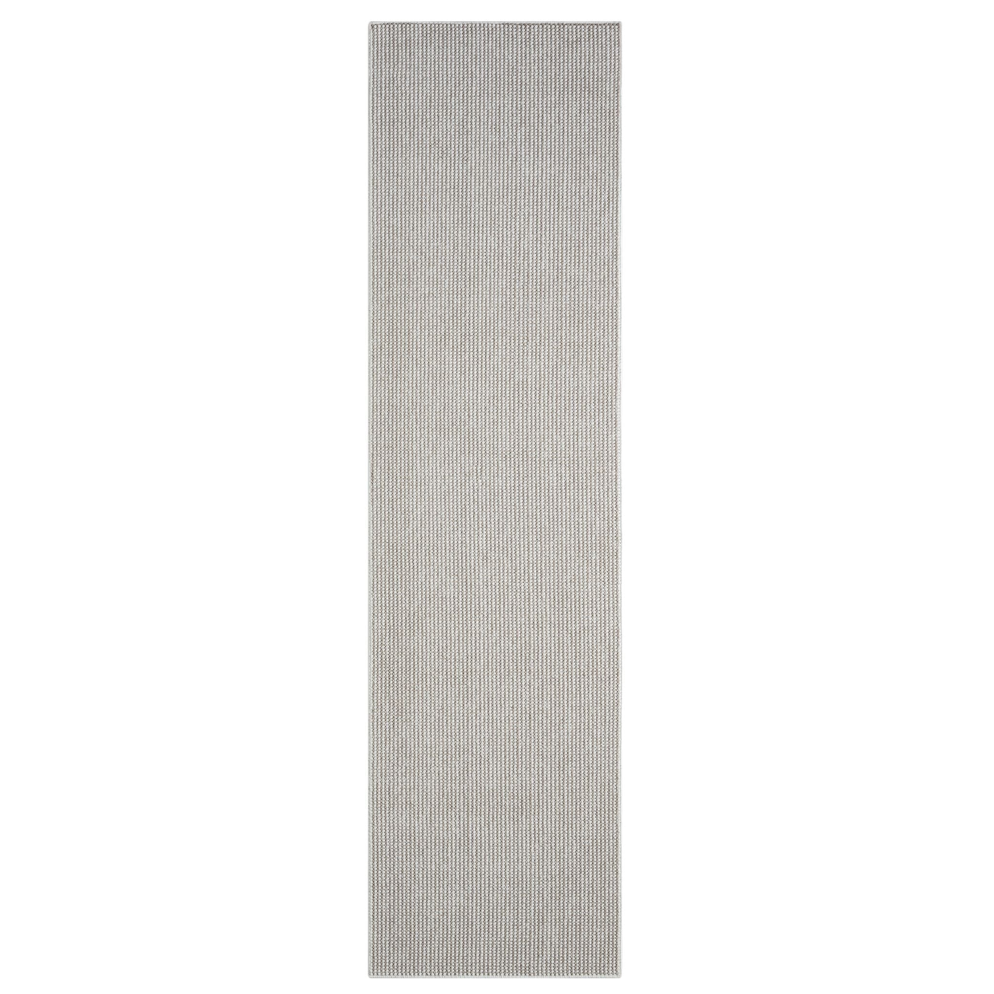 Beige flatweave modern runner rug with subtle geometric texture and minimalist design.