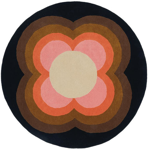 Orla Kiely Flower Spot Chestnut/Violet 158401 Designer Wool Rug Features: Beautiful Modern Designer Wool Rug Material: 100% Pure New Wool Construction: Hand Tufted Pile Height: 17mm Origin: Made In India Sizes (cm): 150 x 150, 200 x 200 Imagine this luxurious wool rug being the new talking point of your home or office. The Orla Kiely Flower Spot Chestnut/Violet 158401 Designer Wool Rug carries the quality and exquisite design that all Orla Kiely products are well known for. The Flower rug is an exquisitely crafted rug, made from the finest pure new wool with refined modern hues. Carved in a refined floral shape, this stunning rug embodies beauty and quality and will breathe life into any space. Shaped like a radiant flower and adorned with warm chestnut and vibrant violet hues, this rug encapsulates Orla Kiely's journey in reimagining her iconic colour palette for the modern age. This intricate rug, made from pure new wool, contains elements that resist colour fading and is stain and mould resistant. It is hand tufted by local experts in India. Once positioned on the floor, this will surely be a one of a kind focal point in any room or location. Orla Kiely, one of the UK's leading designers, have collaborated with Brink & Campman (from The Netherlands, one of the world's leading suppliers of high quality designer rugs), to create their beautiful range of rugs. The Orla Kiely rug range comprises of hand tufted rugs from India, using a 100% Pure Wool pile, translating some of the most iconic Orla Kiely designs onto rugs.  Quality is a component of all Orla Kiely rugs that is never compromised on. Every rug undergoes a rigorous inspection process to ensure each piece meets the highest of quality standards. Design is another key focus of all Orla Kiely Rugs. With vibrant colour palettes and distinctive patterns, Orla Kiely rugs offer you the chance to express your personality through your décor. This stunning design captures the beauty and elegance of the latest in modern designer rugs. Expertly crafted in India, extremely soft and comfortable underfoot, and designed to last, this beautiful timeless rug is a classic piece of art. Make a stylish change to your home or office today with this gorgeous Orla Kiely wool rug. Consider a Rug Pad:  We recommend that an anti-slip rug pad is used underneath our rugs to prevent slippage between the rug and the surface it is placed on, and also to add an extra layer of comfort and insulation. Click here to view our range of rug pads. Please Note: This item cannot be delivered to a PO Box, only to a street address. Please Note: Allow for a slight variation of colours depending on monitor settings.Below is an insight into the design principles and philosophies from Orla Kiely herself:"My passion for mid century design has informed all aspects of my work and the products that have evolved. From our ready to wear, handbags and accessories to watches, jewellery, stationery, homeware and home textiles. The references are subtle but integral to our house style.Often perceived as retro, we reinvent and aspire to newness, my colour palette evolving to build modern on modernism! Drawing, refining and simplifying organic elements into perfect motifs that are then repeated to build rhythmic patterns for everyday applications. A mug, a storage jar, a bathroom towel, modest everyday essentials all deserve and require an attention to detail equal to that we give to a leather handbag or a silk dress. The philosophy and principles remain the same. The integrity ever present.To be enjoyed everyday."