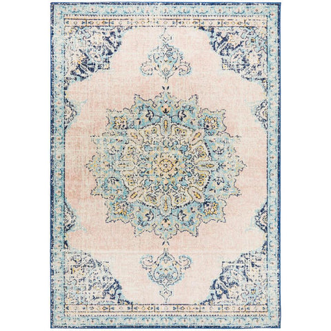 Vedi 2676 Pastel Rose Blue Multi Colour Transitional Rug Details: Features: Beautiful Persian inspired design featuring a stunning vintage faded effect, blending old world charm and modern tones to suit a wide range of interior styles Non shedding, stain resistant and easy to clean - great for long term low maintenance, and perfect for kids, toddlers and pets. Durable for great longevity Origin: Turkey Material: Polypropylene Pile Height: 10mm Style: Transitional Sizes (cm): 230 x 160, 290 x 200, 330 x 240, 400 x 300 Also available in Round and Runner sizes. Construction: Power-loomed Picture the enticing Vedi 2676 Pastel Rose Blue Multi Colour Transitional Rug being the new centrepiece of your home or office. The silky soft, cushioned feel of this luxurious rug will add an unmistakable sense of sophistication and comfort to your floors! This timeless rug has been expertly power loomed in Turkey to the highest standards, is easy maintenance, and is designed to last. It features a stunning, classic antique design in well balanced modern tones, in a silky soft, plush, non-shedding, ultra dense, polypropylene pile, for an amazing, luxurious feel under foot. This transitional rug, with its elegant patterns, will add long lasting comfort and warmth to your floors and create a rich ambiance in any room. Breathe new life into your home or office today with this beautiful, durable and low maintenance transitional rug. Consider a Rug Pad:  We strongly recommend that an anti-slip rug pad is used underneath our rugs to help keep your rug in place (minimising movement of your rug will help to extend it's life), prevent slippage between the rug and the surface it is placed on, and also to add an extra layer of comfort and insulation. Click here to view our range of rug pads. Please Note: This item cannot be delivered to a PO Box, only to a street address. Please Note: Allow for a slight variation of colours depending on monitor settings.