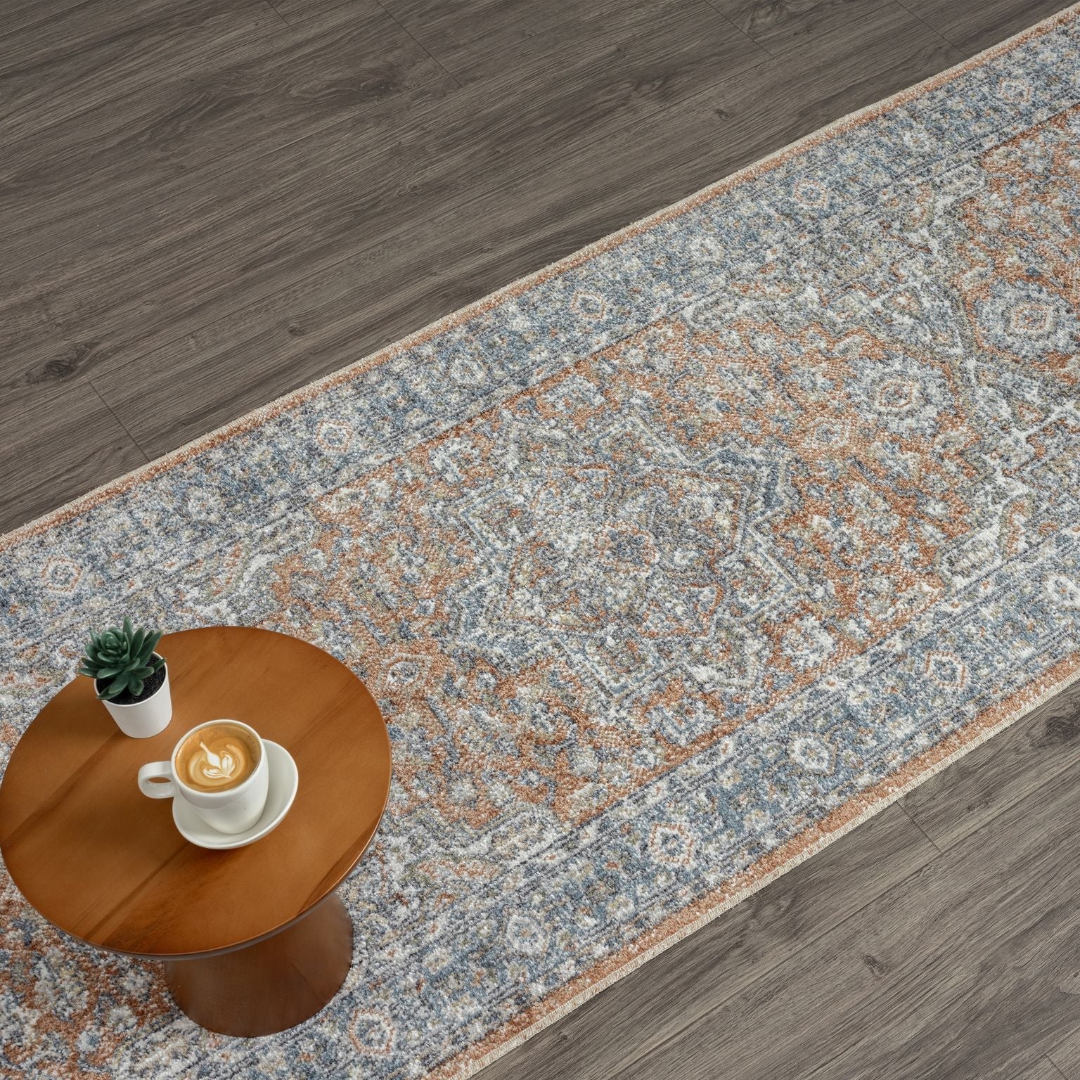 Milano 417 Blue Multi Coloured Machine Washable Transitional Runner Rug Details: