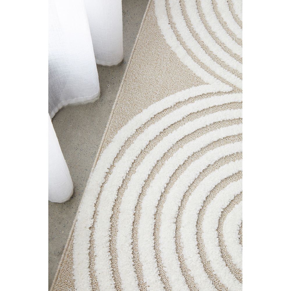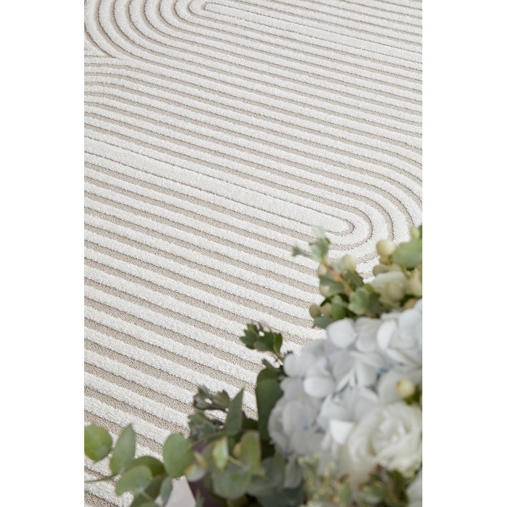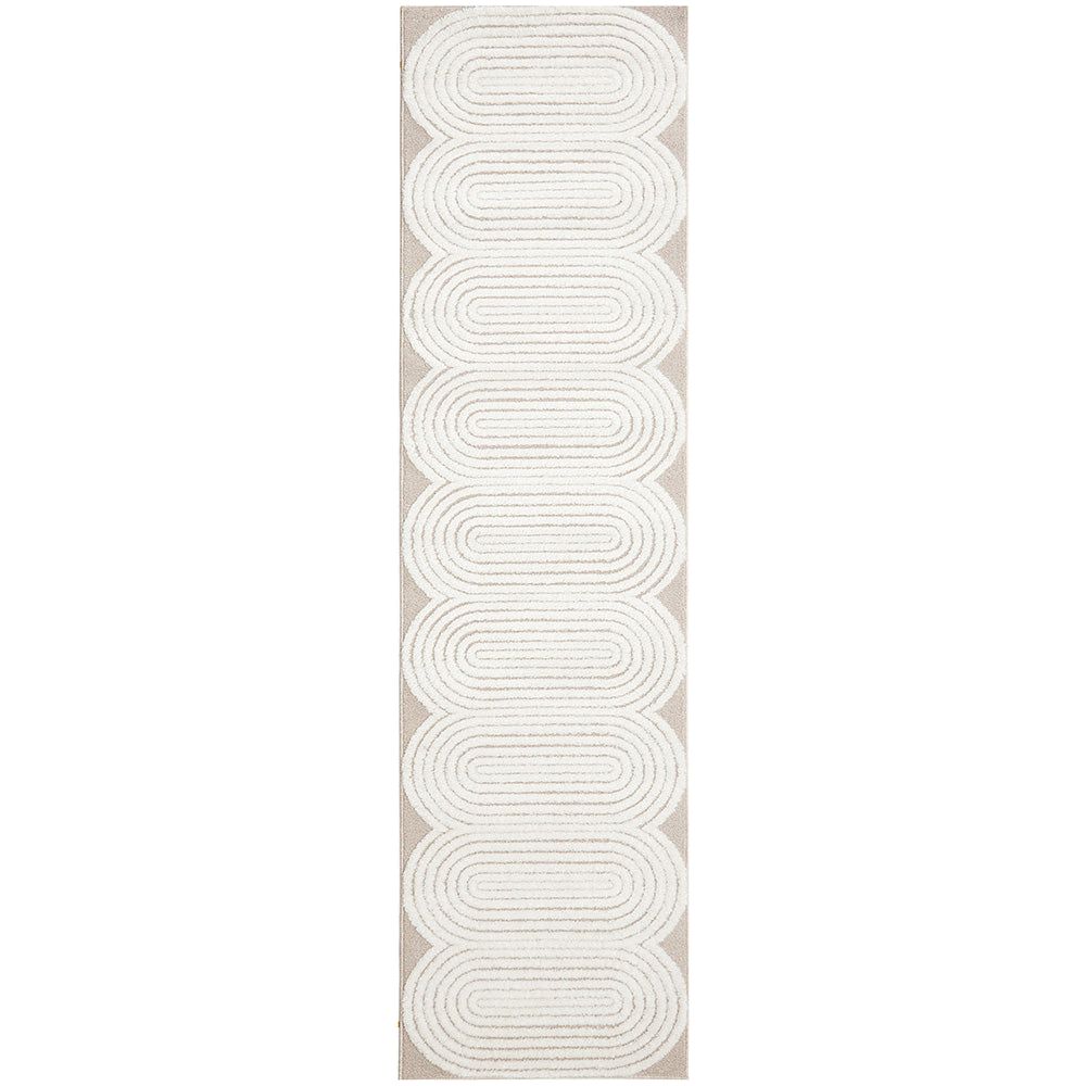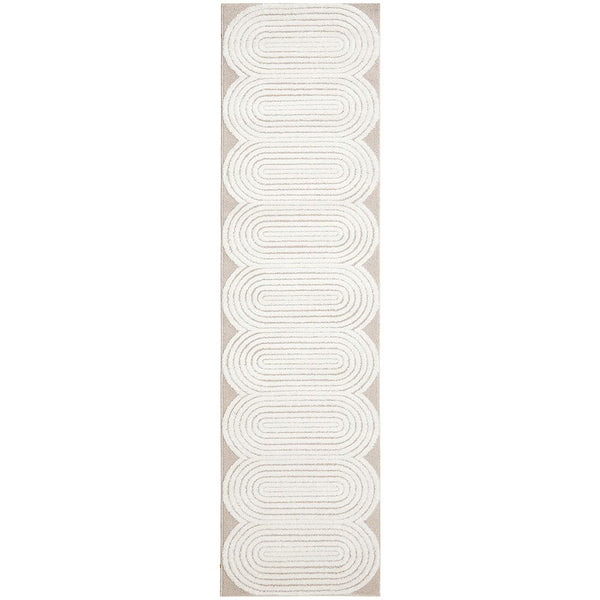 Picture the enticing Agnes 2455 Beige White Modern Patterned Runner Rug being the new centrepiece of your home or office. The silky soft, luxurious rug features a captivating pattern of curved oval shapes created through meticulous high and low pile detailing, evoking an unmistakable sense of sophistication, calmness, balance and comfort to your floors!