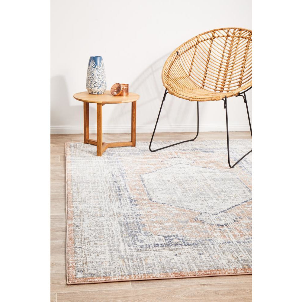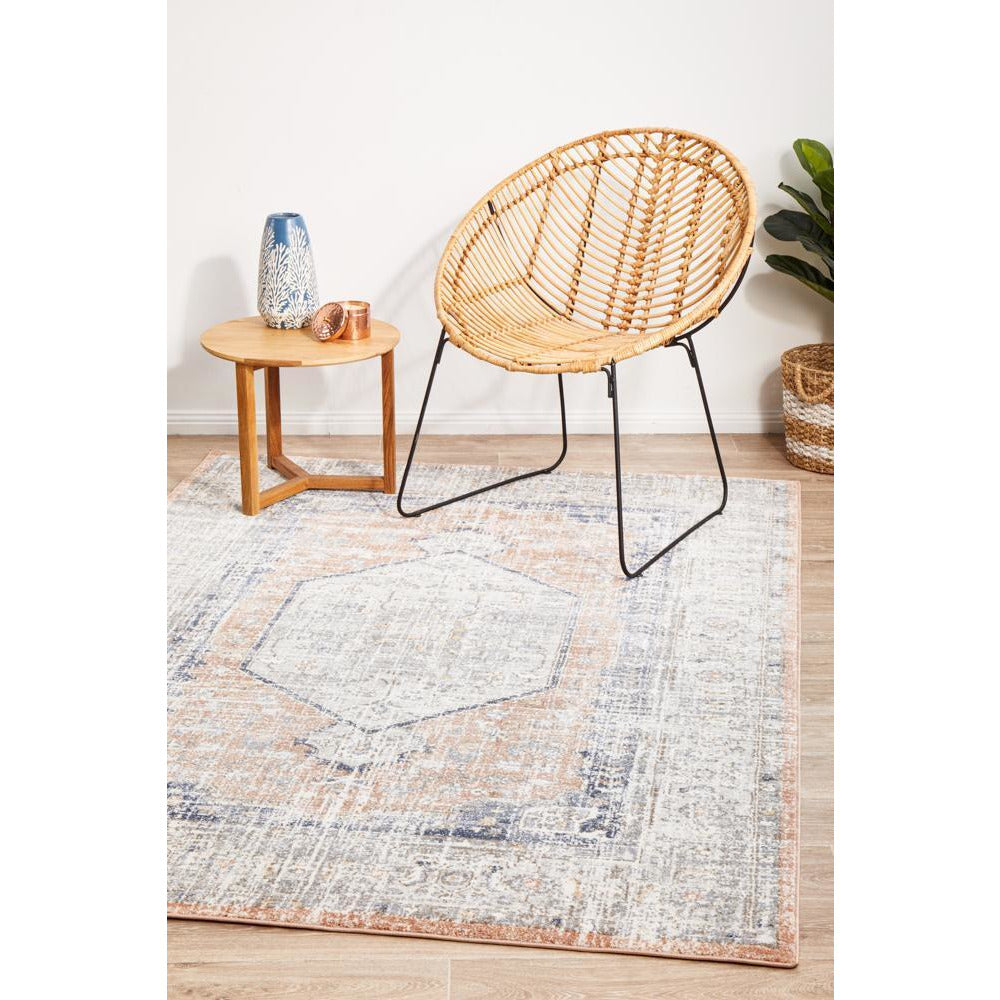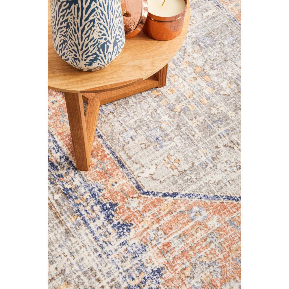 Bergen 1433 Peach Ocean Blue Transitional Medallion Patterned Rug