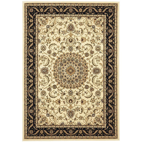 Charook 2375 Ivory Traditional Pattern Black Border Rug