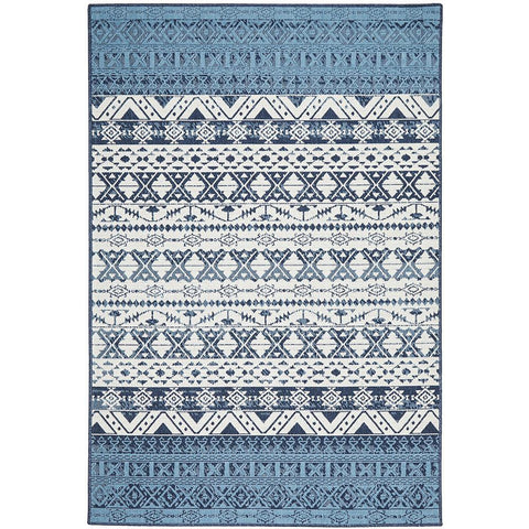 Coogee 4452 White Blue Tribal Inspired Indoor Outdoor Modern Rug - Rugs Of Beauty - 1