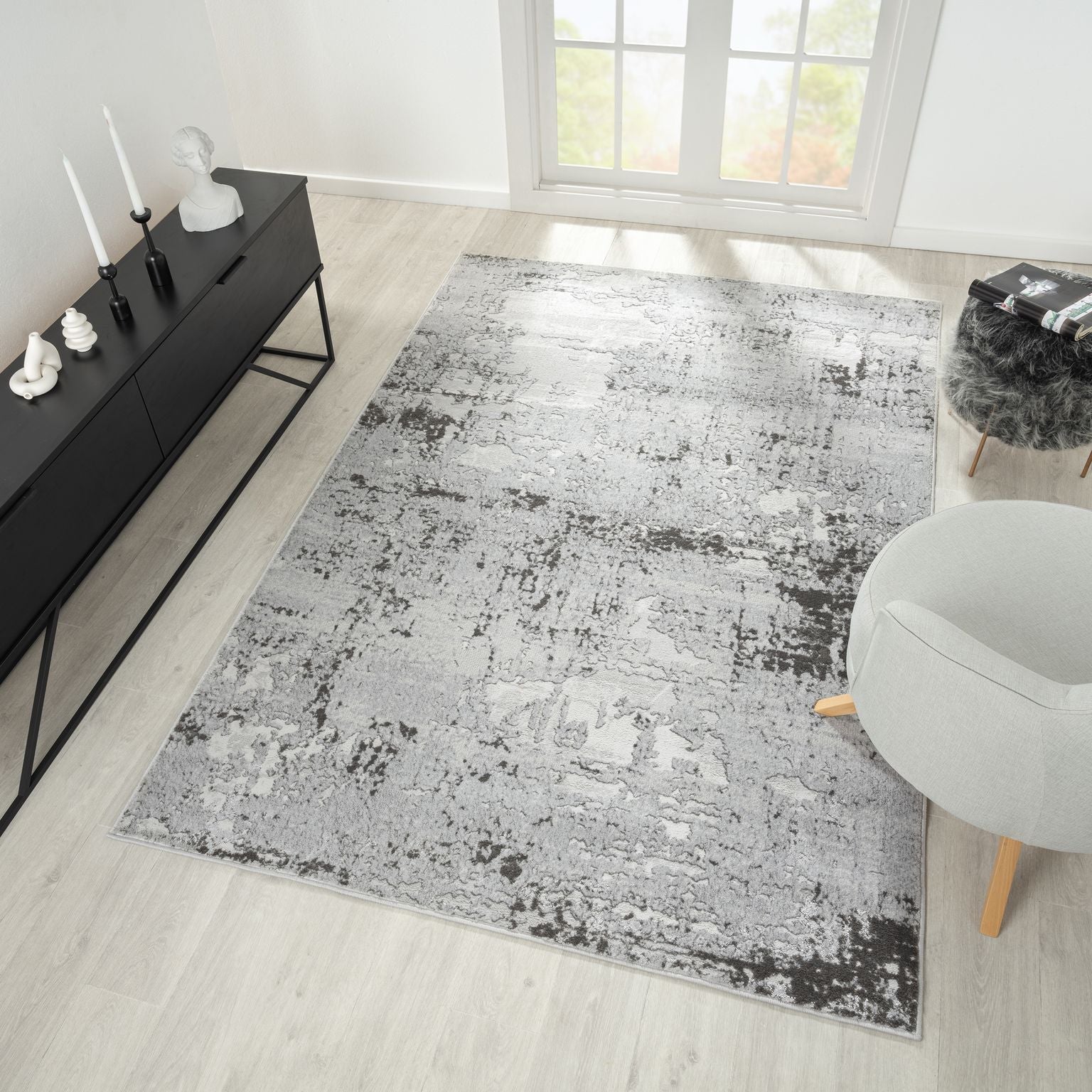 Gray and white textured area rug