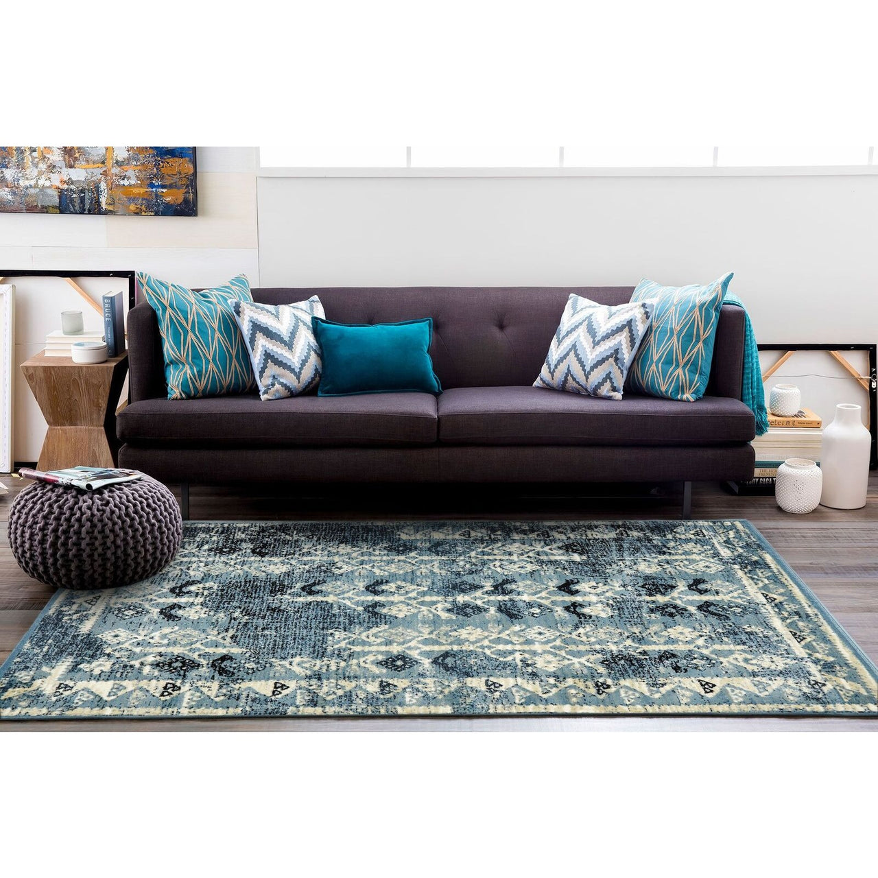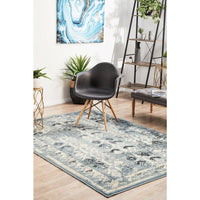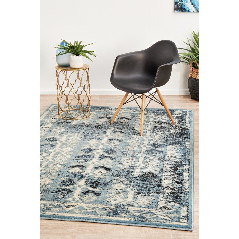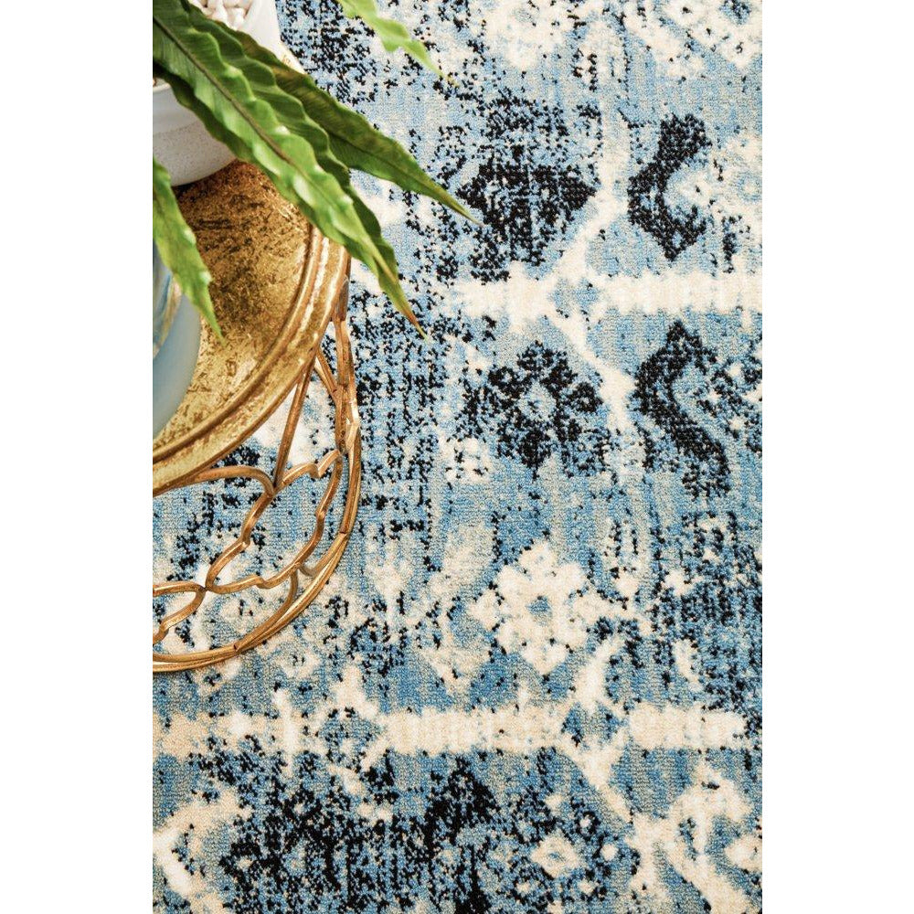 This rug features a classic faded geometric tree motif in shades of blues and white, in a stunning finish that won't fade over time. Low maintenance, durable, and high quality, this rug will add style and sophistication to your room or office with its contemporary patterns and colours.