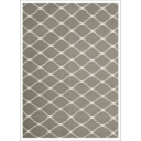 Flatweave Trellis Stitch Design Wool Rug Grey