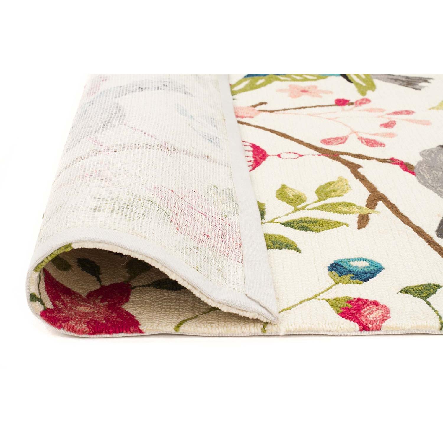 Florence 1534 White Multi Colour Floral Birds Bird Cages Outdoor Modern Rug