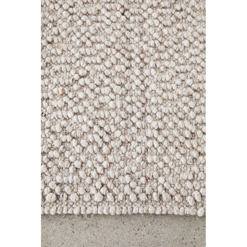 The natural tones of this rug makes it a versatile addition, perfectly suited for neutral decor. The high-low pile creates a unique boucle textured effect that adds visual interest to your space, and invites you to sink your feet into the plush pile. Elevate your space with the modern allure and cosy comfort of our Hampshire 4723 Natural Patterned Modern Wool Blend Rug, the perfect choice for those seeking a stylish, inviting and refined ambiance.