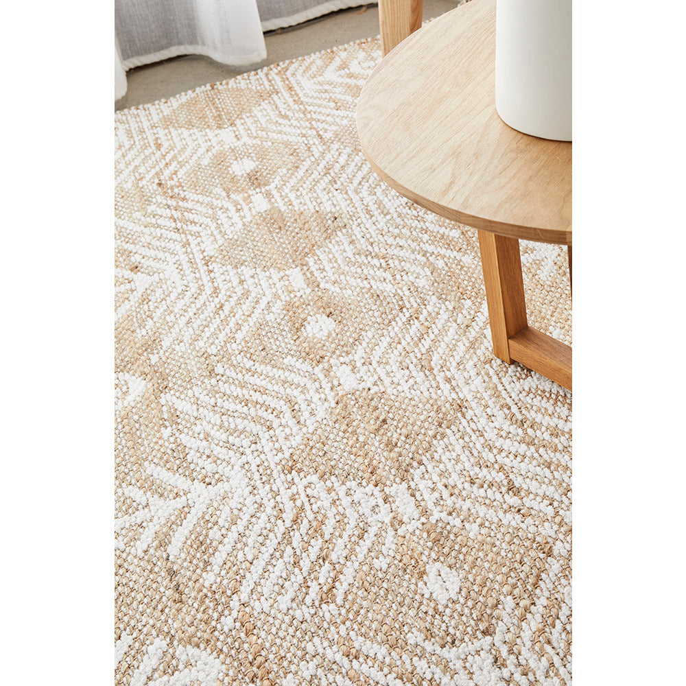 Picture the enticing Haraze 452 Modern Natural Tribal Patterned Rug being the new centrepiece of your home or office. The natural fibres of jute and cotton, along with this rugs unique tribal bohemian inspired patterns will add an unmistakable sense of sophistication, calmness, balance and comfort to your floors!