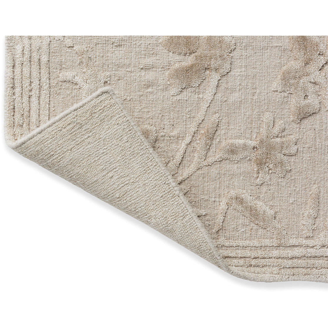 Charismatic and pretty, this striking floral monoprint is a relaunch of a wallpaper pattern held in the Laura Ashley archive, from 1996. The Rye design incorporates a trailing floral motif, featuring large flowerheads, leaves and stems. This beautiful handloom jacquard combines three qualities of yarn. The matte wool and cotton quality in the ground are the perfect base for the highlighted floral motive in the bamboo silk pile. This unique bamboo yarn gives this quality rug an element of luxury and lustre. With this a lovely antique look and feel has been created.