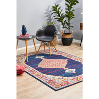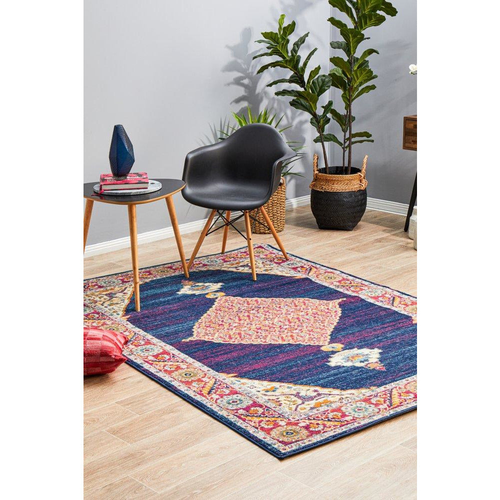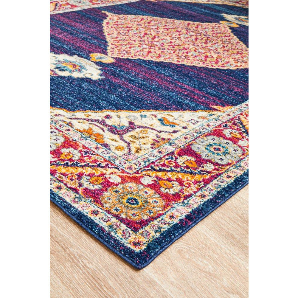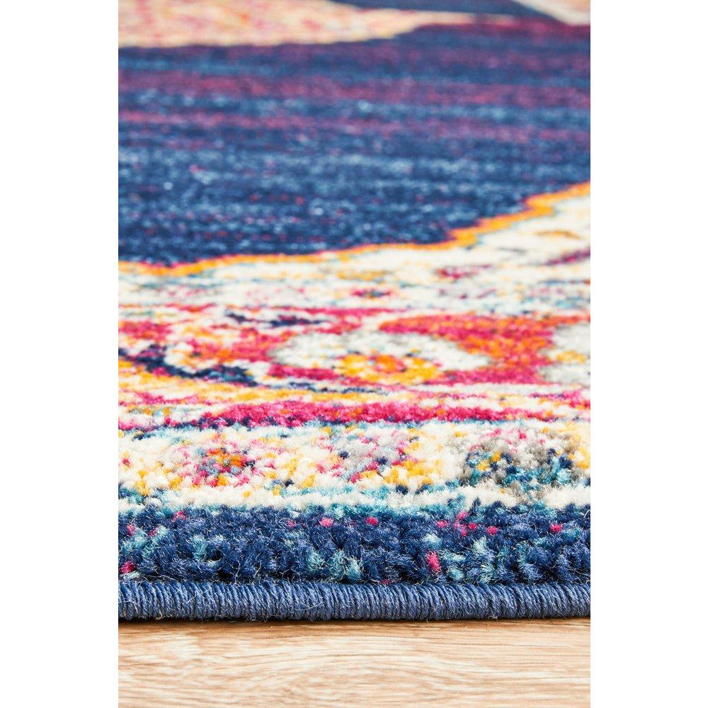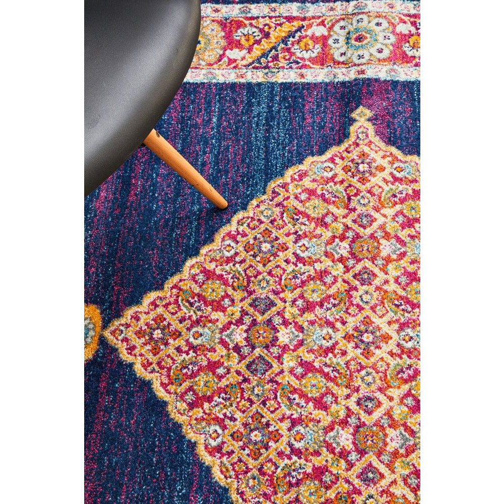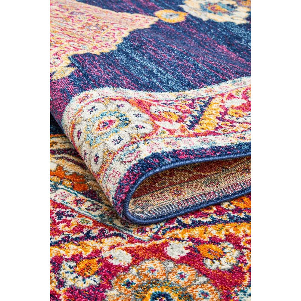 Salerno 1635 Blue Purple Multi Colour Transitional Medallion Patterned Rug