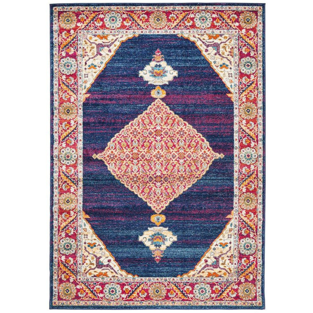Salerno 1635 Blue Purple Multi Colour Transitional Medallion Patterned Rug - Rugs Of Beauty - 1