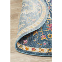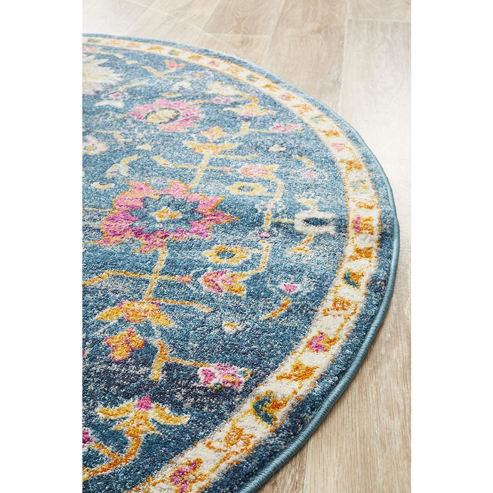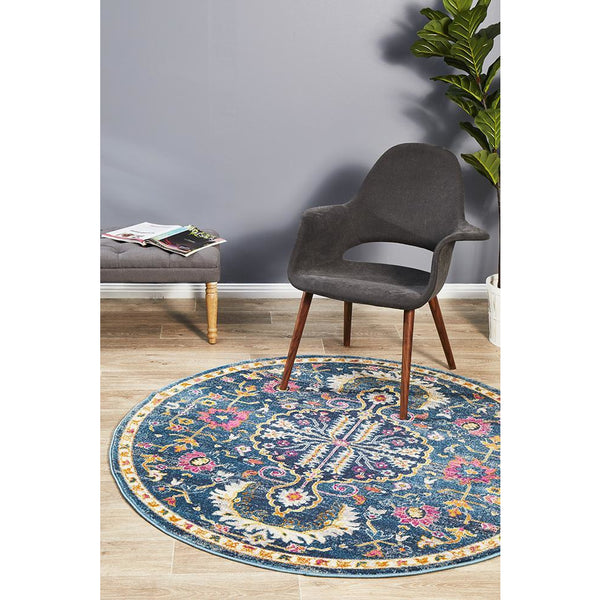 Selje 609 Navy Blue Pink Multi Colour Transitional Bohemian Inspired Round Rug