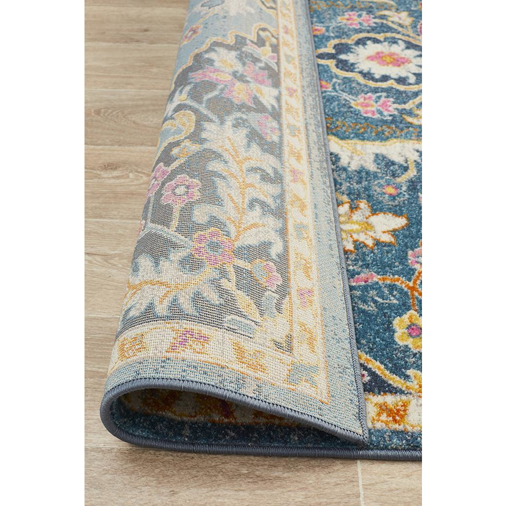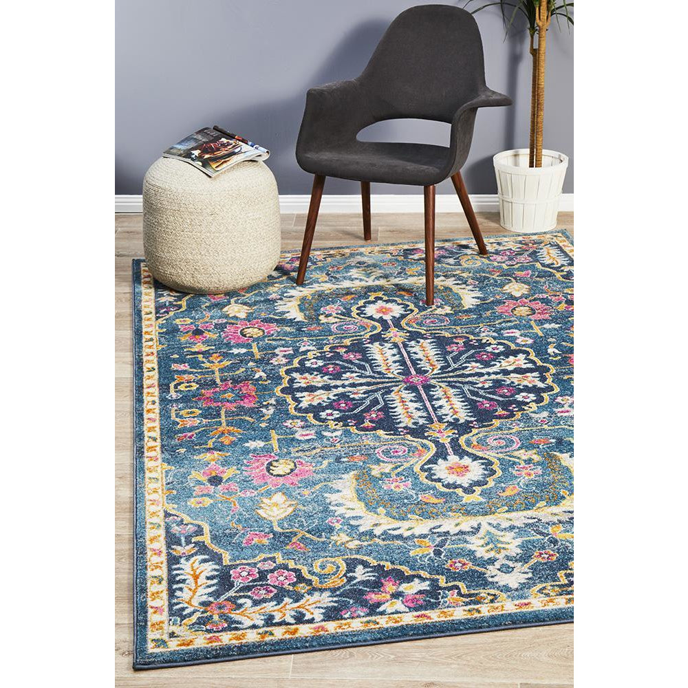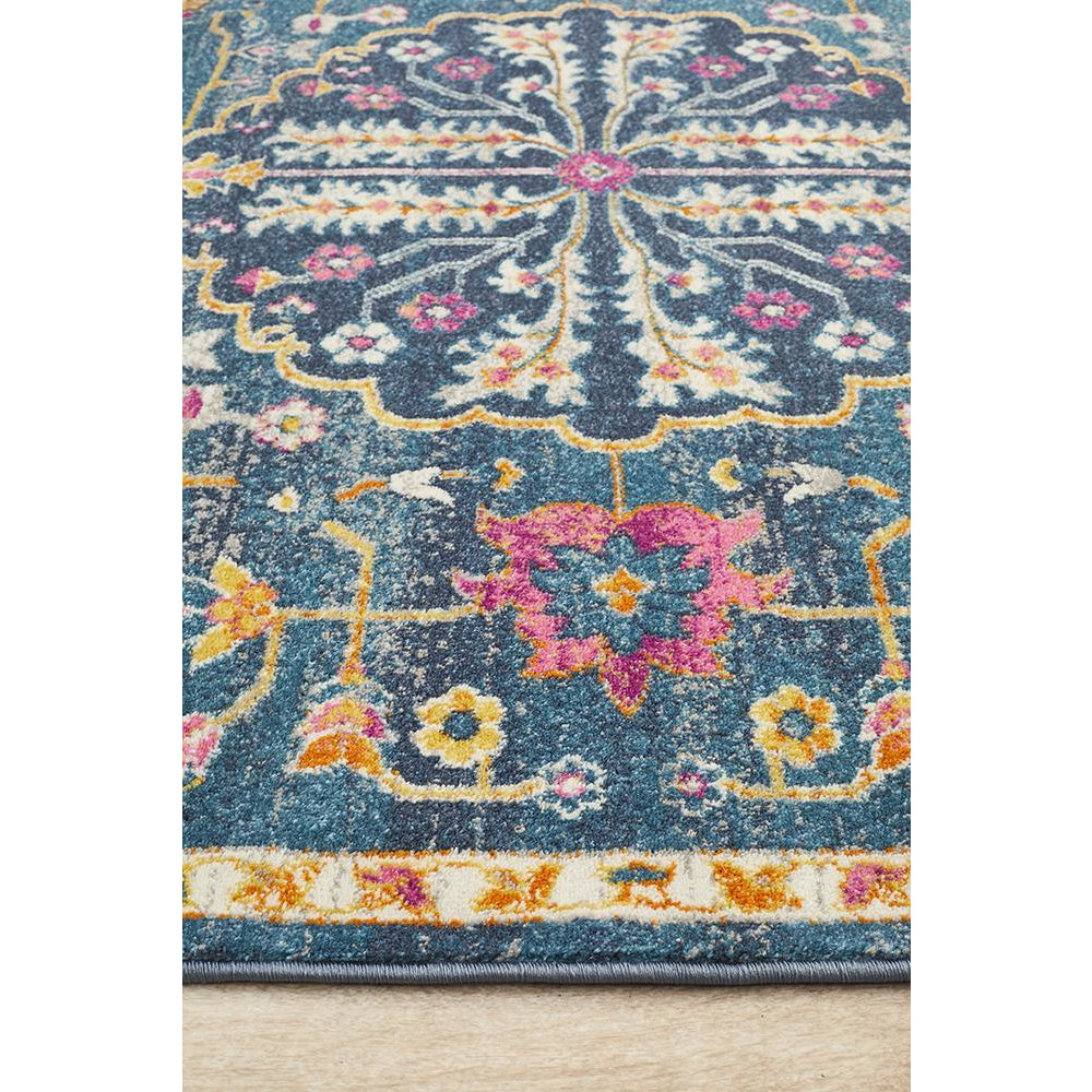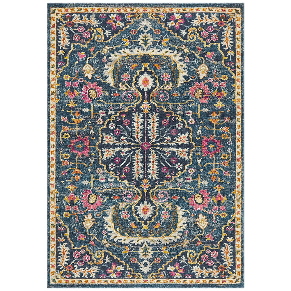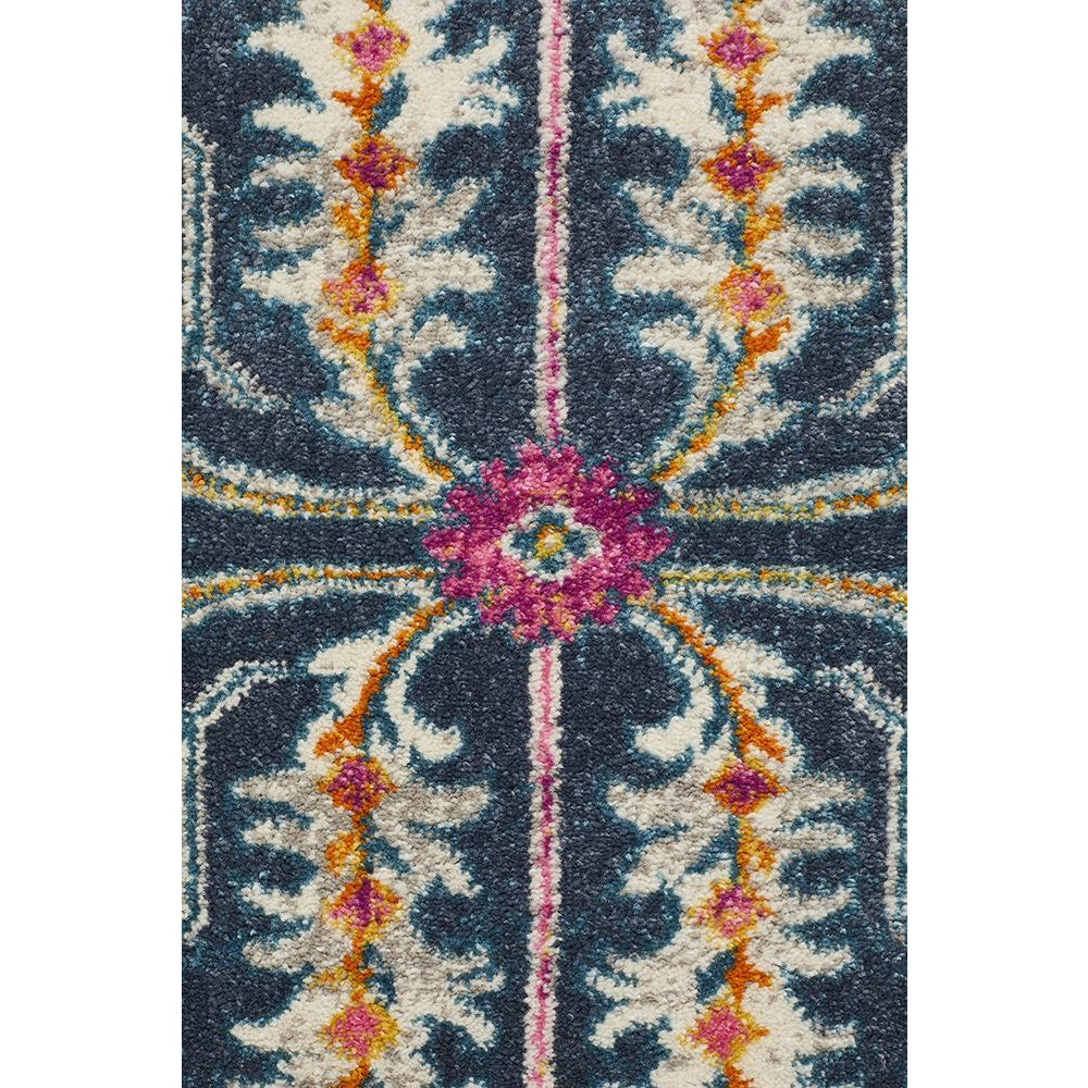 Selje 609 Navy Blue Pink Multi Colour Transitional Bohemian Inspired Rug