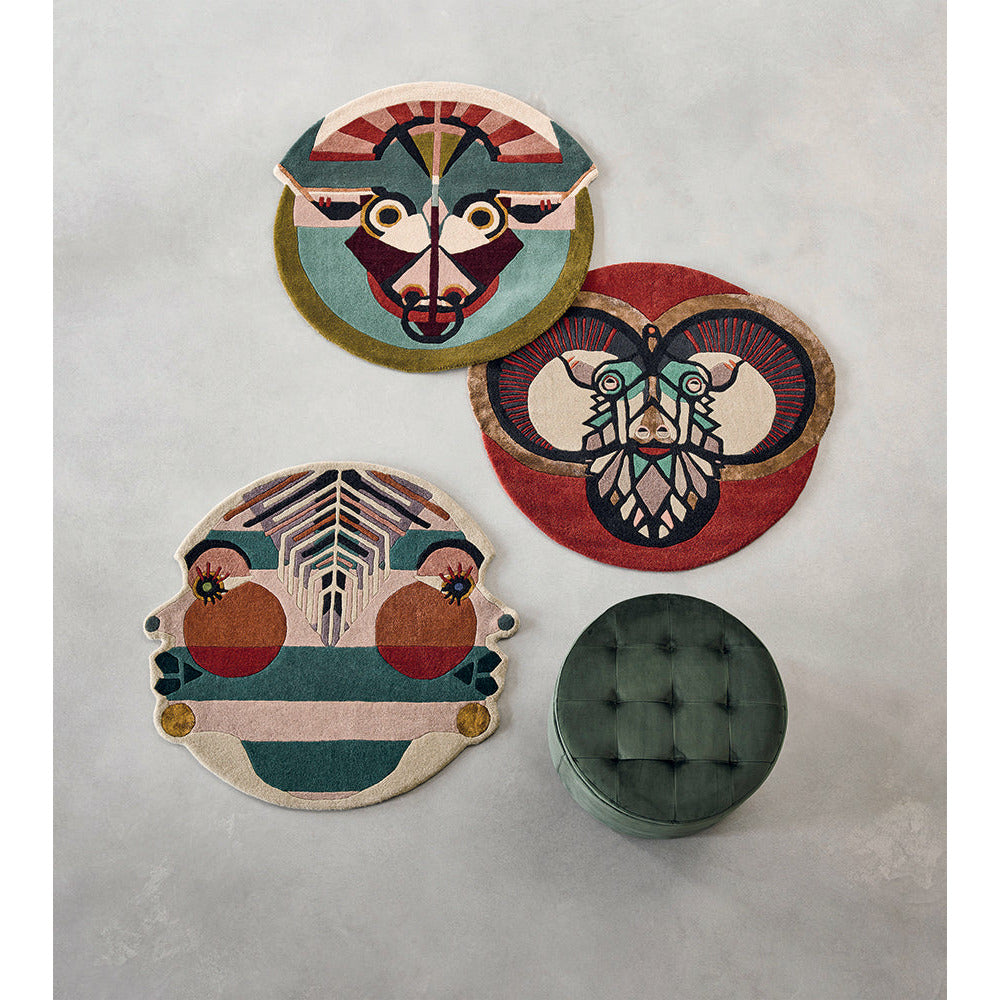 The Ted Baker Zodiac collection is a playful interpretation of the astrological signs. Taurus is represented here by a bulls head in red, olive and teal tones adorned with bronze and gold. Viscose adds an element of luxury and the cut pile adds texture and compliments the intricacies of this design. These rugs are hand-tufted and cut in India using wool and viscose.