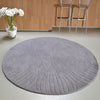 Wedgwood Folia Grey 38305 Wool Designer Round Rug featuring carved leaf motifs on a grey background
