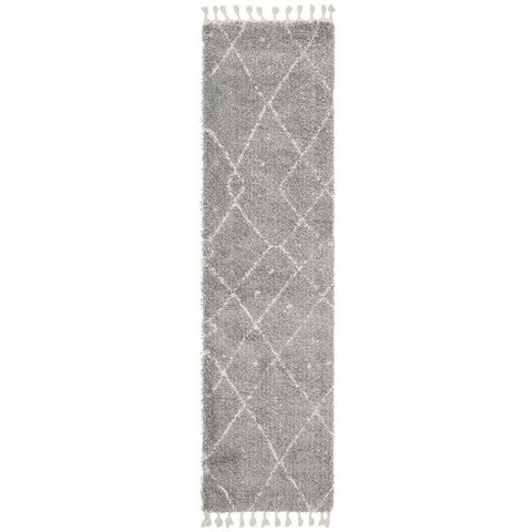 Zaria 154 Silver Grey Moroccan Inspired Modern Shaggy Runner Rug - Rugs Of Beauty - 1