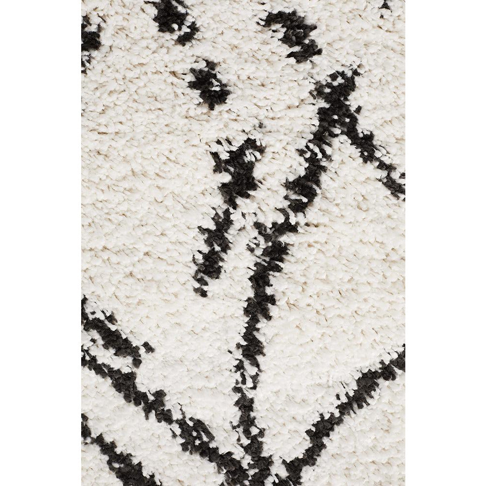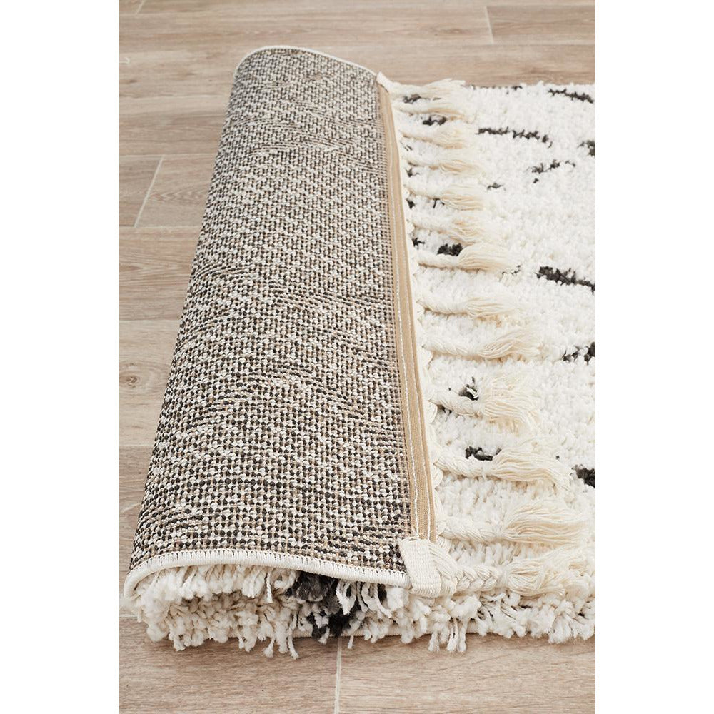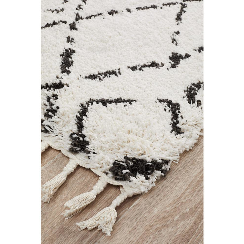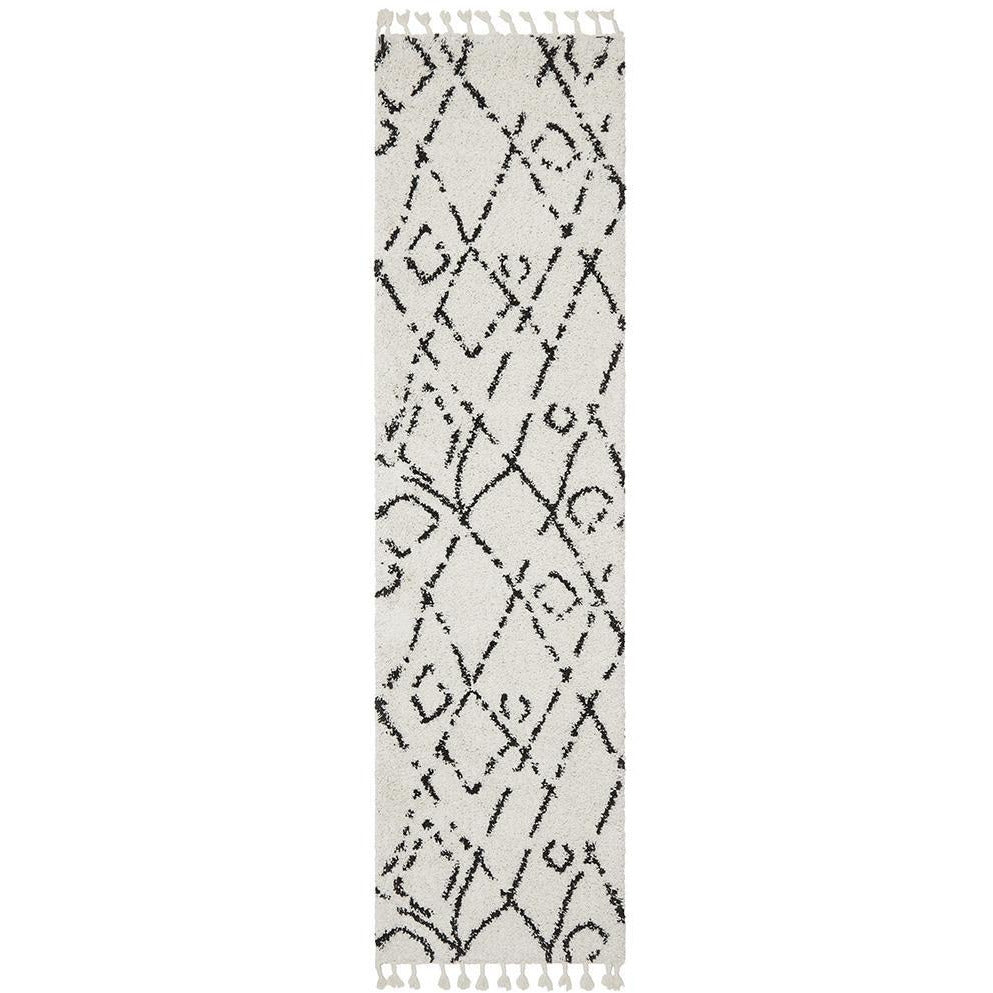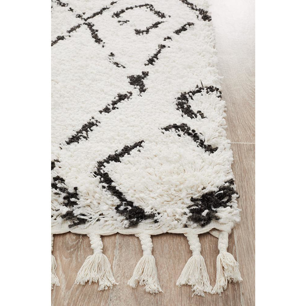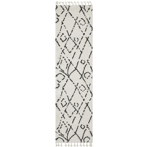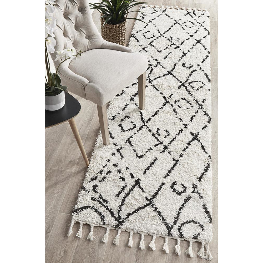 Zaria 155 White Black Moroccan Inspired Modern Shaggy Runner Rug