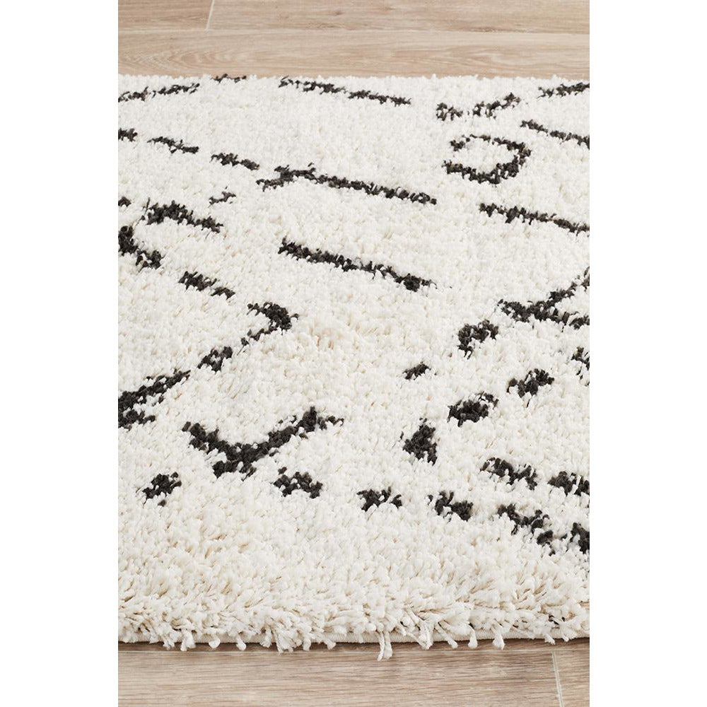 Zaria 155 White Black Moroccan Inspired Modern Shaggy Runner Rug - Rugs Of Beauty - 1